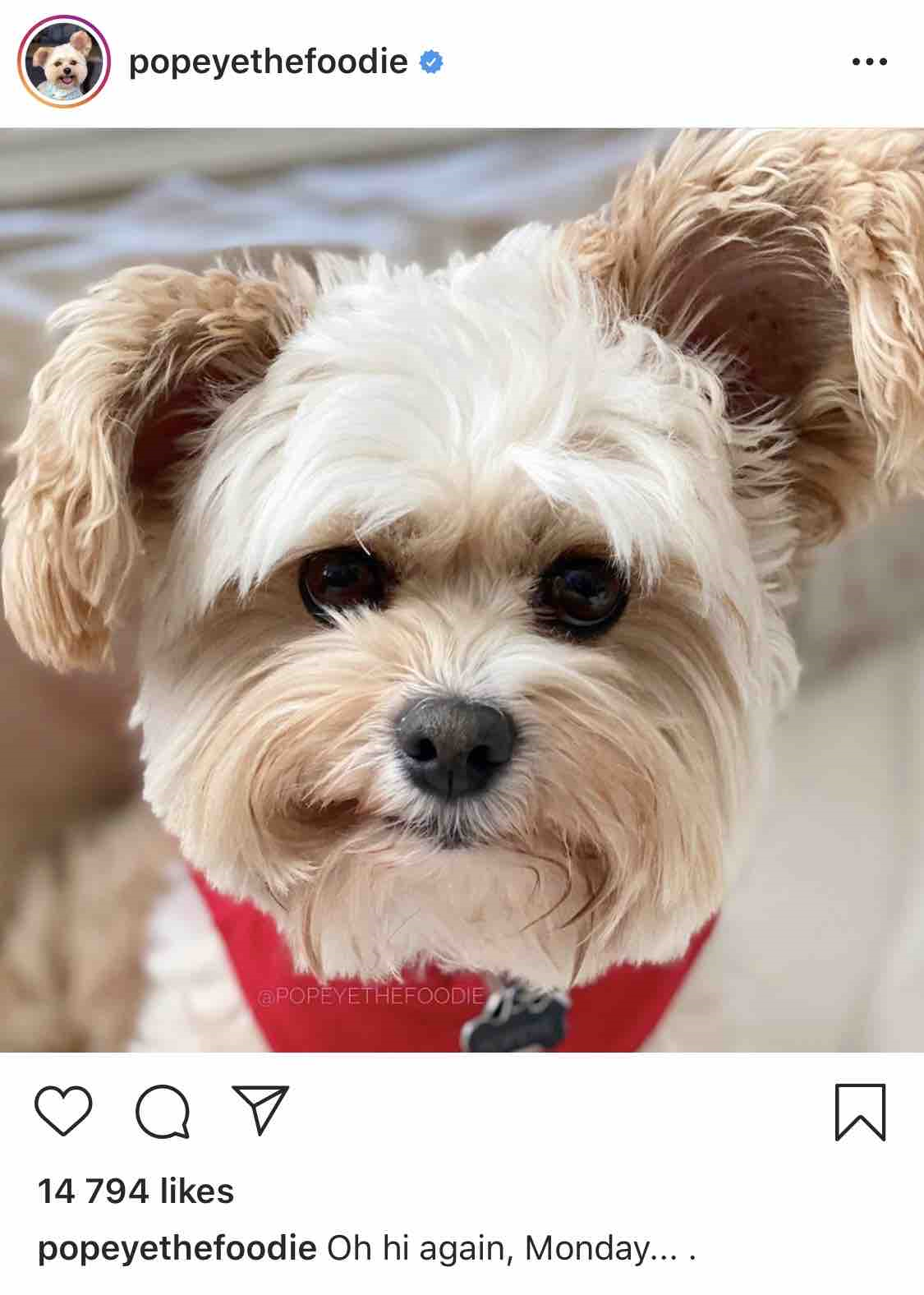1. Instagram - Popeye Foodie Dog Yorkpo Shirranian Terrier